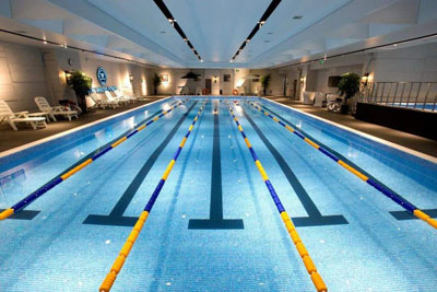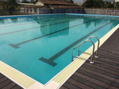 游泳池是人們從事游泳運動的場地,人們可以在里面活動或進行比賽。多數(shù)游泳池建在地面,根據(jù)水溫可分為一般游泳池和溫水游泳池。游泳池游泳運動專門場所。分室內(nèi)、室外兩種。正式比賽用池為長50米、寬至少21米、水深1.8米以上;供游泳、跳水和水球綜合使用的池,水深1.3~3.5米;設(shè)10米跳臺的池,水深應(yīng)為5米。游泳池水溫應(yīng)保持在27~28°c。應(yīng)有過濾和消毒設(shè)備,以保持池水清潔。