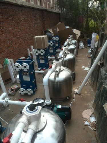 游泳池及水上樂(lè)園水過(guò)濾循環(huán)處理設(shè)備及游泳池加熱設(shè)備安裝現(xiàn)場(chǎng):