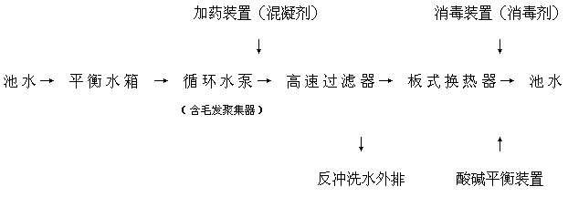 5、泳池循環(huán)系統(tǒng)工藝流程說(shuō)明簡(jiǎn)述(詳見(jiàn)下圖)