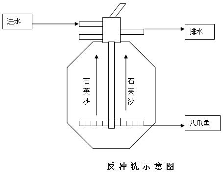 沙缸經(jīng)過(guò)一段時(shí)間的使用,積存的污物阻礙水流使其減弱。這時(shí)就要對(duì)過(guò)濾器進(jìn)行清潔。將控制開(kāi)關(guān)打到"BACKWASH"位置,這時(shí)水流就變成了反方向流動(dòng),水流八爪魚(yú)進(jìn)入沙缸底部,再經(jīng)過(guò)沙層反沖上來(lái),將以前捕集的污物,殘?jiān)鼪_起從排水口排出。
