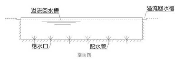 2.池水表面臟污雜質(zhì)可通過溢流槽收集后進(jìn)入水處理系統(tǒng),可有效凈化池水表面水、懸浮物質(zhì)。布水口較多,池底沉積物少。
