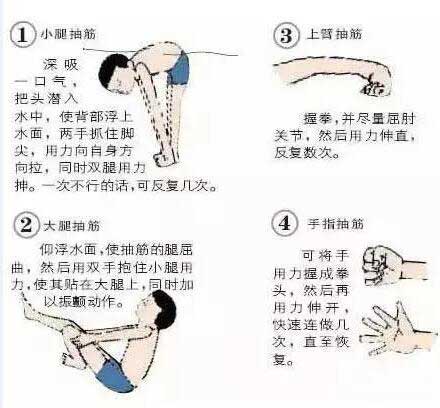 2、若是小腿或腳趾抽筋,先吸一口氣仰浮水上,用抽筋肢體對側的手握住抽筋肢體的腳趾,并用力向身體方向拉,同時用同側的手掌壓在抽筋肢體的膝蓋上,幫助抽筋腿伸直;