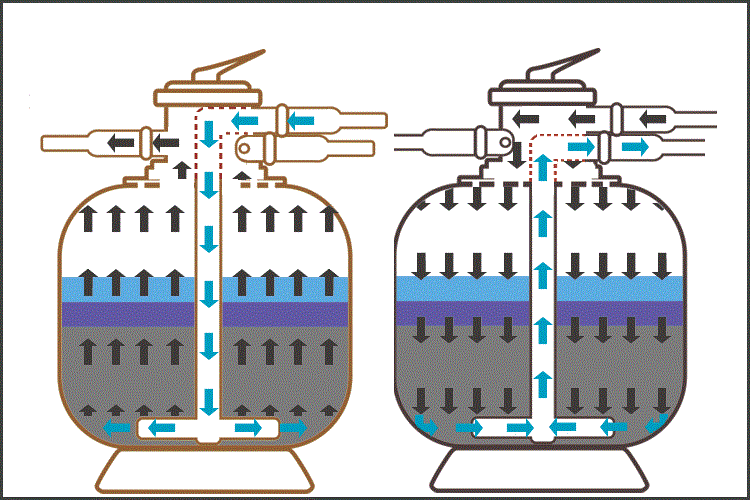 砂缸里一般放置一定規模的石英沙,在一定范圍內石英沙的大小規格不同,在砂缸里,石英沙從上到下、由小到大依此排列,正常過濾時,水是從砂的上層進入,由下層出來。當水從上流經濾層時,水中部分的固體懸浮物質進入上層濾料形成的微小空眼受到吸附和機械阻留作用被濾料的表面層所截留,同時,這些被截留的懸浮物之間又發生重疊和架橋作用,就好象在濾層表面形成一層薄膜,繼續過濾著水中的懸浮物質,這就是所謂濾料表面層的薄膜過濾。這種過濾作用不僅濾層表面有,而當水進入中間濾層時也有這種截留作用,為區別于表面層的過濾,這種作用稱之為滲透過濾作用。
