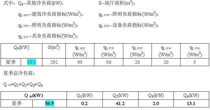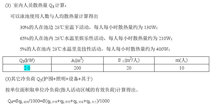 4、游泳池恒溫熱負荷計算