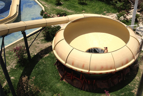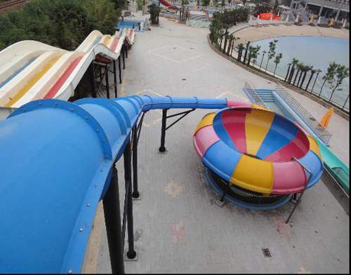 (2)滑梯表層采用間苯型膠衣具有高機(jī)械強(qiáng)度,耐高溫、耐腐蝕性和耐氧化性能,并有光潔、滑順、防紫外線、防褪色等特點(diǎn)。