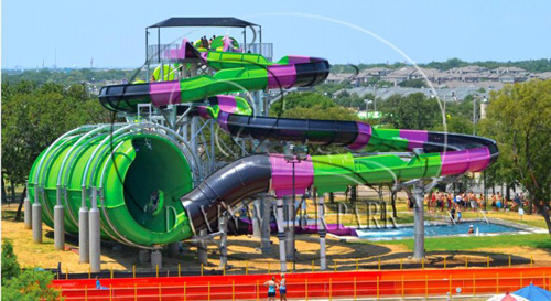 •     水上樂園設備:人沖天回旋水滑梯特別適合喜歡驚險、刺激的勇于挑戰的人群。 游客乘坐專用皮筏,從13米高平臺入口處下滑,經過一段螺旋引道后,如同太空飛船般俯沖而下,越過最低點后帶著巨大的慣性,沖向對面的爬坡滑板,并迅速爬升至最高點,體驗“沖天”的快感;驚魂甫定時,又在自身重力作用下快速回落,進入回收滑槽內,并再次經過半圓的回旋滑入落水池,體驗“回旋”的暈眩。