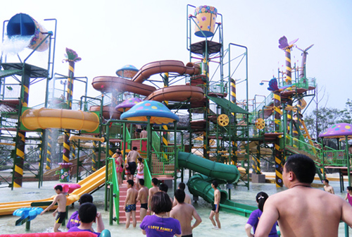 大型水寨是超大型互動水上城堡,此水上游樂設(shè)備占地面積達(dá)2000平方米,超過7屋樓的總高,6道滑梯總長超過350米,多項娛樂設(shè)施匯集于一身,還有兩個超級大翻桶,時不時灑下滿天飛舞的水花令人瘋狂尖叫。