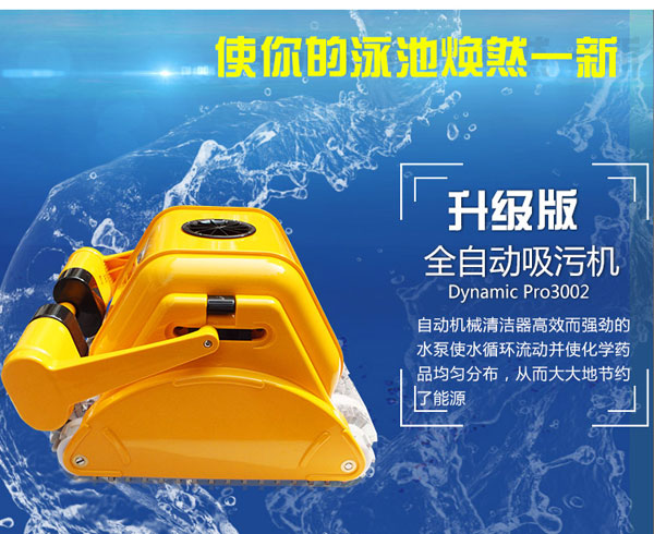 海豚3002全自動吸污機,本身設置有智能程序控制裝,可編程,根據游泳池的大小設定不同的模式,具有掃描泳池,鎖定記憶等功能。智能化全自動的清潔泳池,靈活方便。不用人工操作,省時省力。