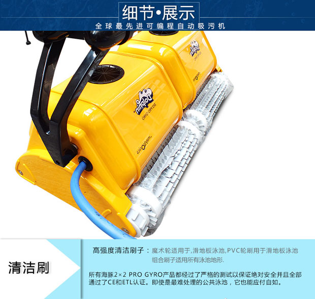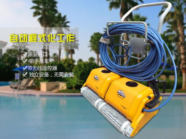 海豚2×2游泳池吸污機獨立操作,耗電量低,清掃、洗刷、過濾讓您的泳池清潔無后顧之憂,集新性能與改進性能于一體,可完成擦洗、清掃、真空吸附及過濾工作,使你的泳池清澈見底。