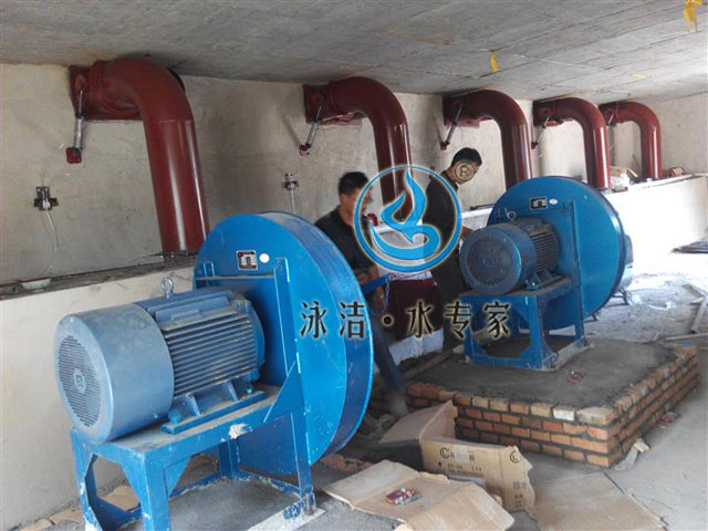 氣壓式造浪機是將高壓離心風機鼓出的強大氣流引入氣壓室,通過周而復始的吹抽排高壓空氣,壓迫氣壓室內的自由水面興起波浪。改變抽排氣流的變換頻率和氣壓大小,既可改變波浪的大小和浪型。